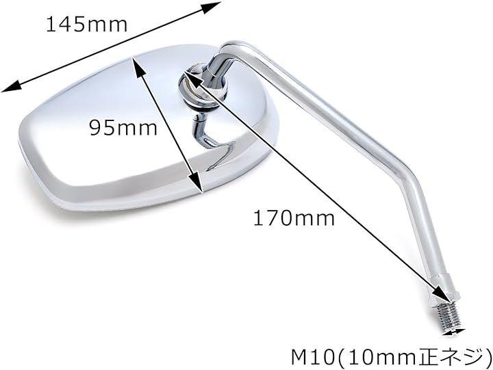 ネジ 10mm 正ネジ ミラー 幅145mm 高さ95mm アーム長170mm 素材 ミラーボディ:プラスチック製 アーム:金属