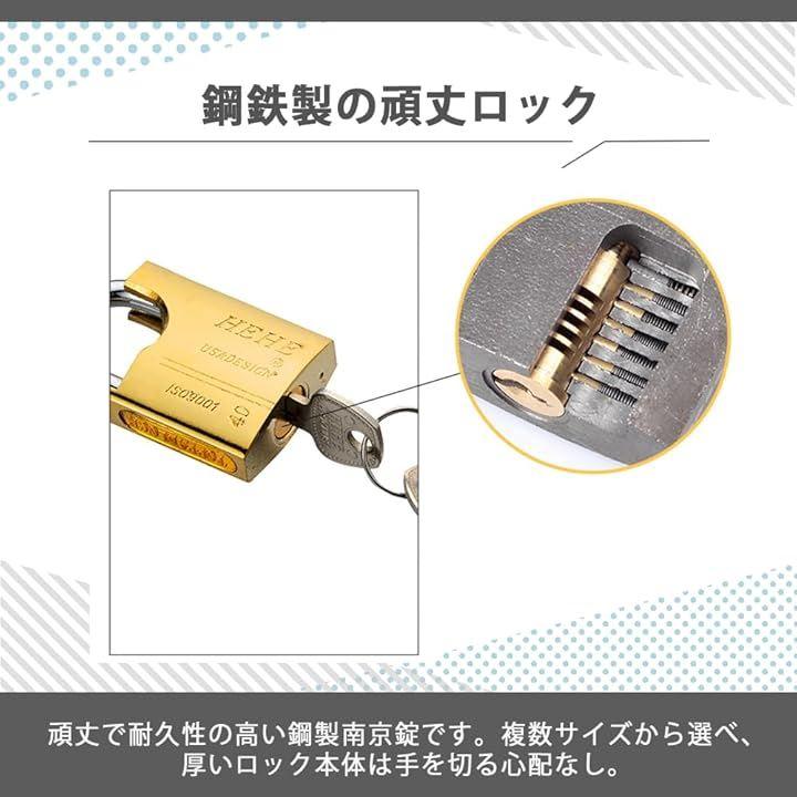 「鋼鉄製の頑丈ロック」頑丈で耐久性の高い鋼製南京錠です。