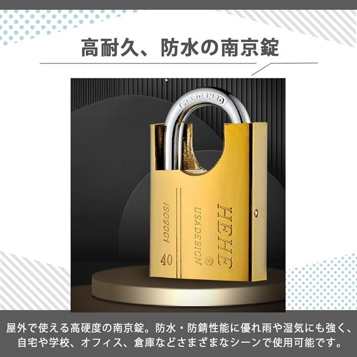 「高耐久、防水の南京錠」屋外で使える高硬度の南京錠。