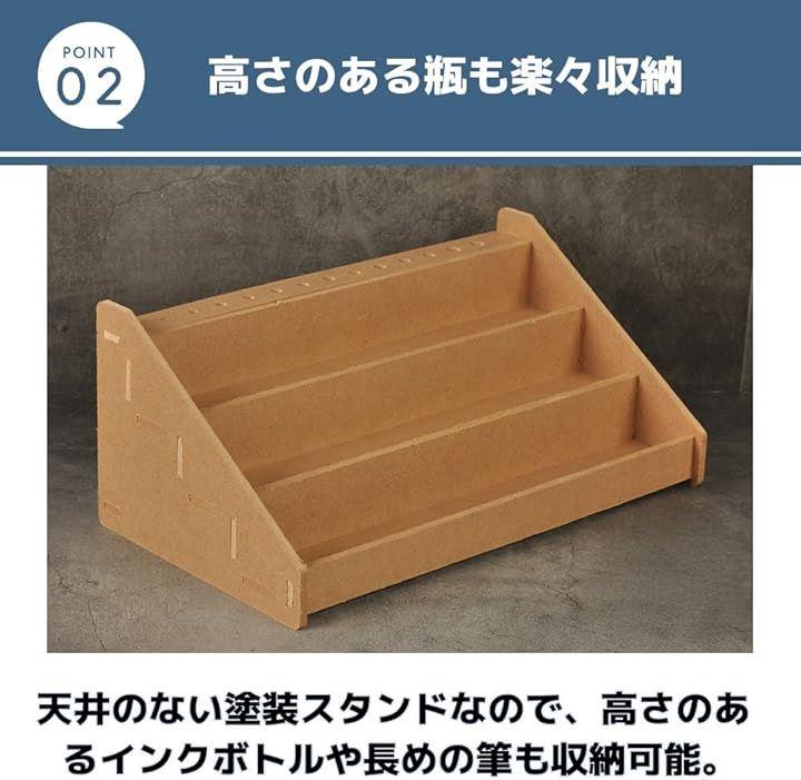 「高さのある瓶も楽々収納」天井のない塗装スタンドなので、高さのあるインクボトルや長めの筆も収納可能。