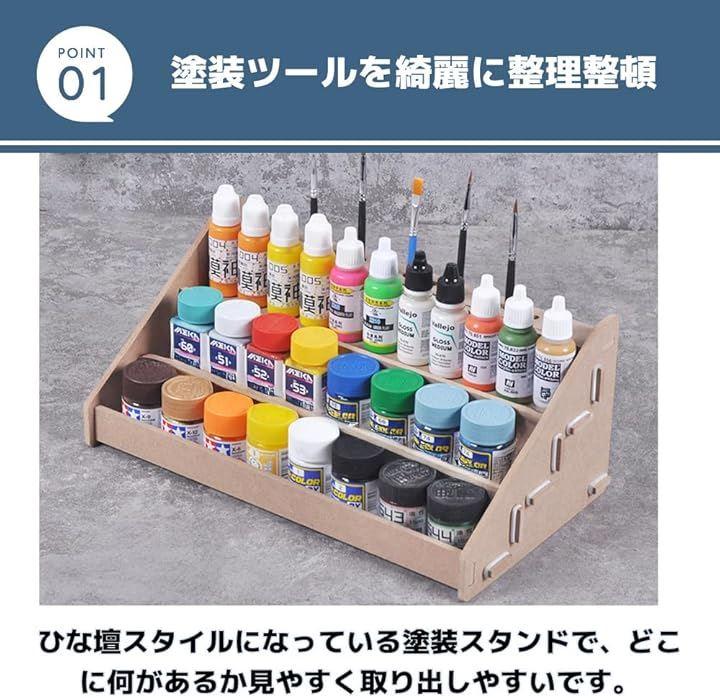 ひな壇スタイルになっている塗装スタンドで、どこに何があるか見やすく取り出しやすいです。