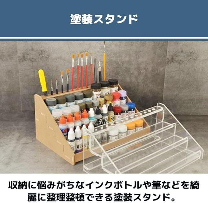 「塗装ツールを綺麗に整理整頓」収納に悩みがちなインクボトルや筆などを綺麗に整理整頓できる塗装スタンド。