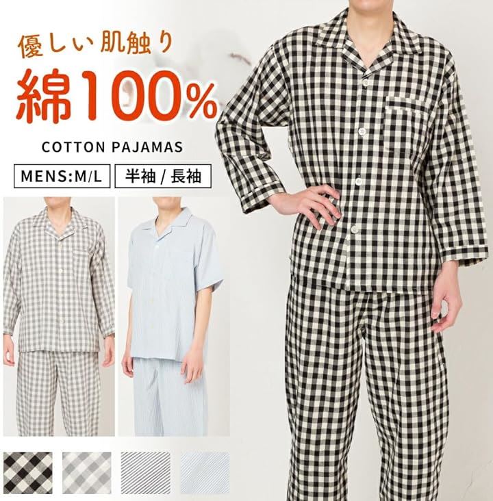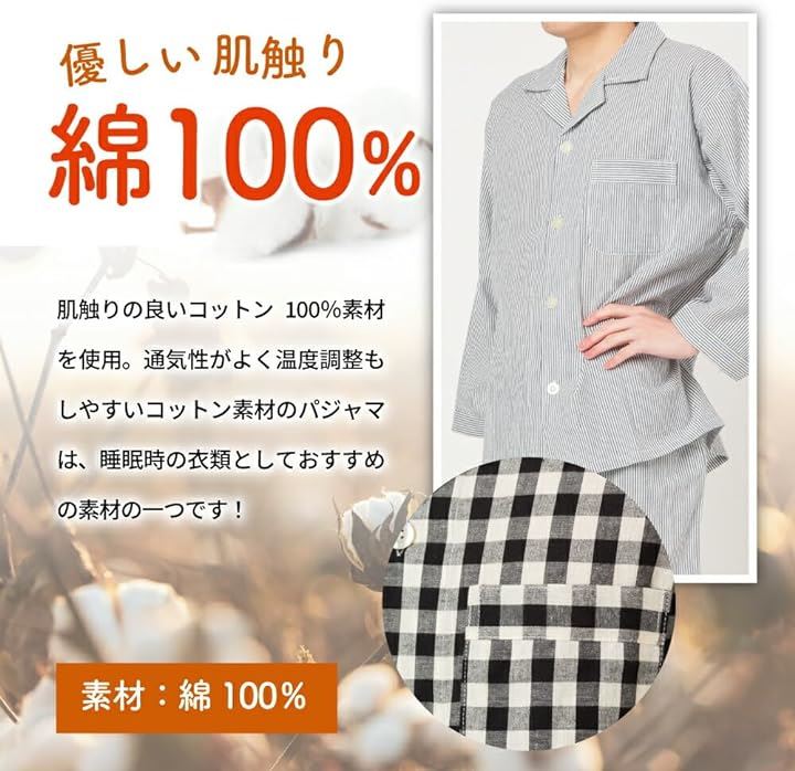 100%綿素材で作られたこのパジャマセットは、一年中快適な睡眠とリラックスタイムをサポートします。