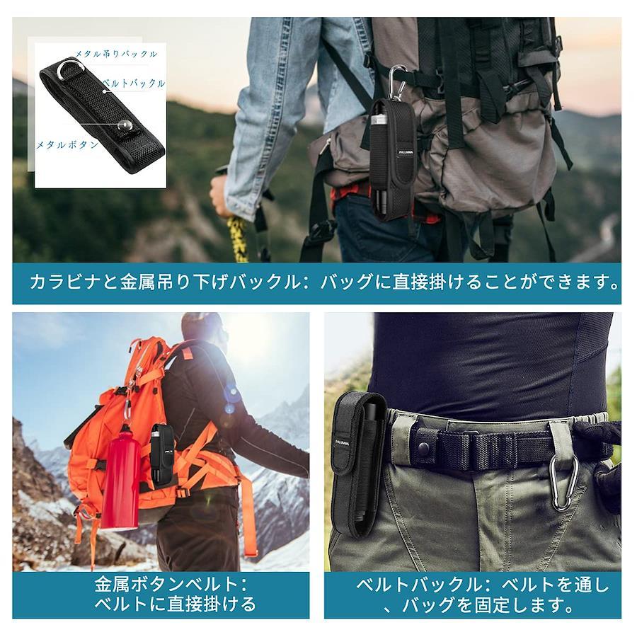 3営業日以内に発送≪新品未開封品≫:【耐久性】懐中電灯用ポーチはナイロン素材を採用しています。防水、耐摩耗性、防?性、清?性に優れています。耐久性が良い懐中電灯ホルスターです。【合理的なデザイン】電池専用ポーチは懐中電灯バッグの側面に設計されています、18650バッテリーまたは充電ケーブルを簡単に持ち運ぶことができます。電源がない場合は、バッテリーを交換するか、すぐに充電できます。【持ち運び便利】アウトドアで懐中電灯を持ちやすいように設計され、両手の照明も解放されます。ベルト、肩ひも、リュックサックに簡単に挟むことができます。携帯に便利です。【落ちる心配なし】懐中電灯ケースはベルトバックルと吊り下げバックルで設計されているので、ベルトなどにしっかりと固定できます。フックとカラビナの組み合わせデザインは、ショルダーストラップまたはバックパックに掛けて、簡単かつ迅速に取り外すことができます。落ちる心配がありません。【小型&弾力性】伸縮性のあるストラップは懐中電灯カバーの両側に採用されています。様々な懐中電灯に適しています(長さ:12.5~17cm;直径:4.2cm以内の懐中電灯)。ご注意:ぜひサイズを確認の上、ご購入ください。