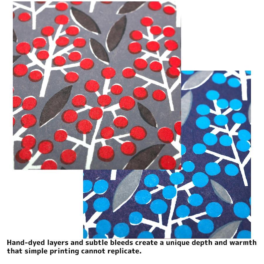 一版ごとに丁寧に染め上げることで、単なるプリントでは表現できない奥行きと温かみが生まれます。