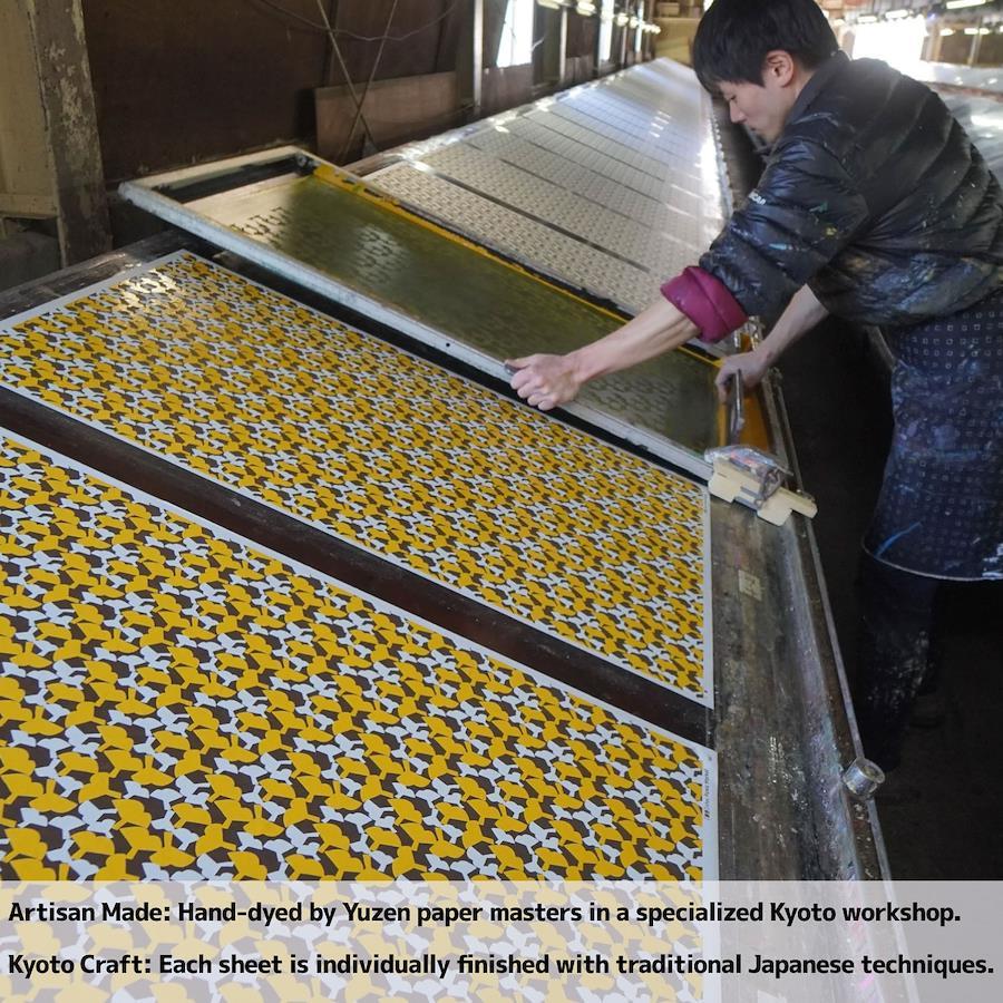 刷り上がった手染め和紙は、京都の貼り箱職人が一点ずつ手作業で仕上げ。ひとつひとつ微妙に異なる表情が、あなただけの特別感を演出します。