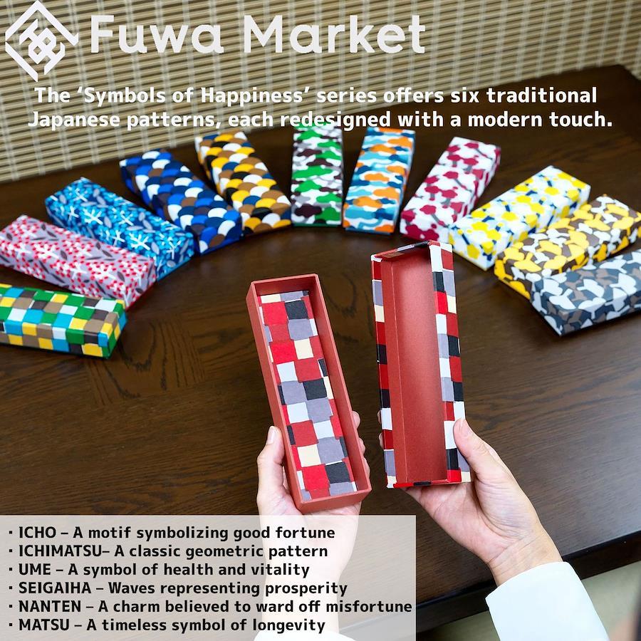 「幸せの文様」シリーズは、日本の伝統文様が持つ「幸せを願う意味」に着目し、テキスタイルデザイナーとともに生み出したFuwa Marketオリジナルデザインです。
