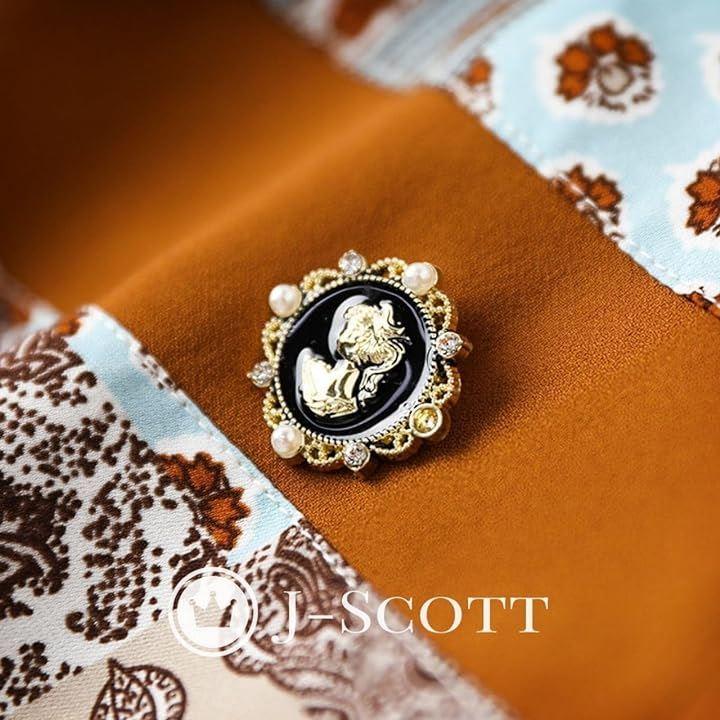袖口のパールボタンや、取り外し可能なブローチが着こなしのアクセントになって。