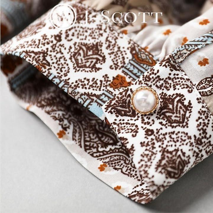 ロマンチックでシックな印象のプリントが着こなしに映えるプリントブラウス。