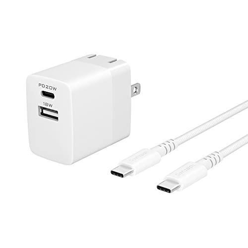 PD20W Type-C+A 各1ポート AC充電器 温度センサー搭載 超タフType-C to C 1.2m ケーブル セット ホワイト OWL-APD20ACC12-WH [USB Power D
