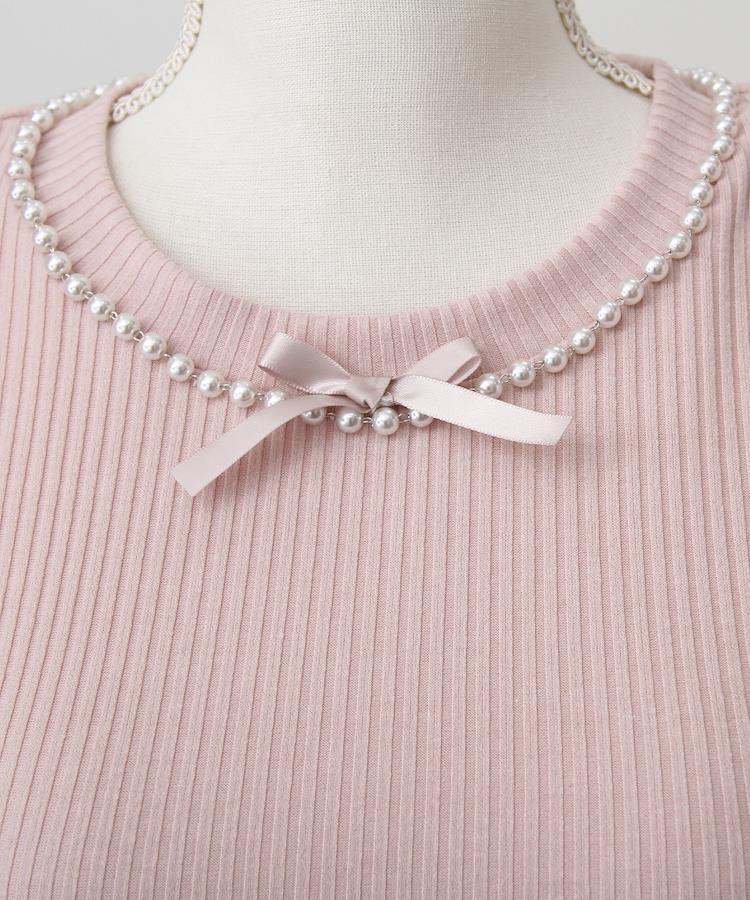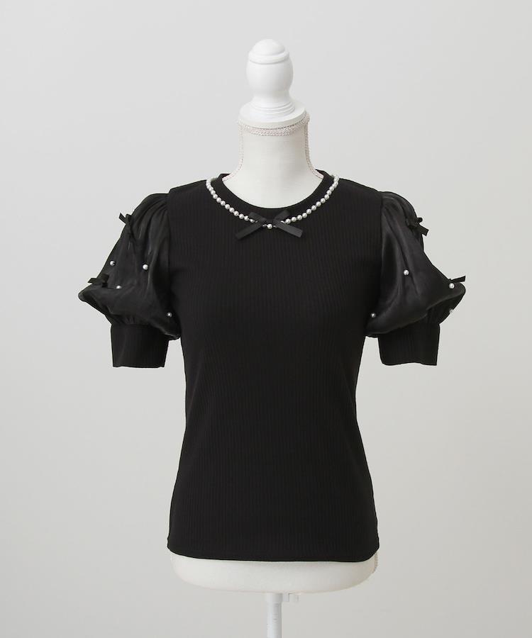 まるでお姫様のようなパフ袖♪ネックレスデザインがかわいいリブカットトップス。