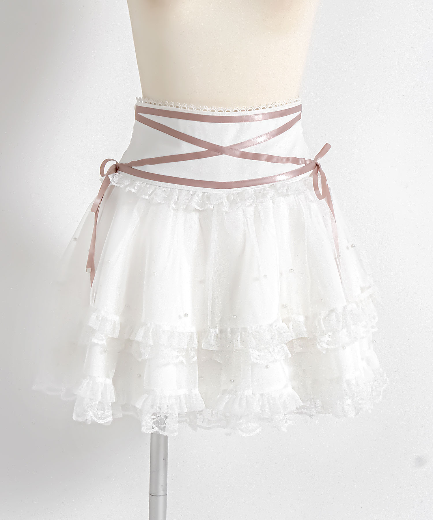 繊細なチュールにあしらわれたパールとレースが甘さを引き立ててくれます♪