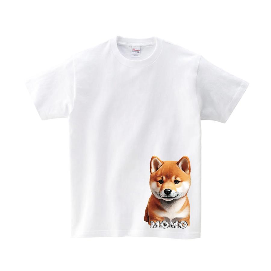 名入れのできるデッサン風の柴犬の子犬Tシャツです。「MOMO」の部分をお好きなアルファベットに変更できます。※画像ははめ込み画像となり、実際とは多少異なりますので予めご了承ください。 ※サイズ表をよくご確認の上ご購入ください。 ※受注生産となるため、返品、交換はご遠慮ください。