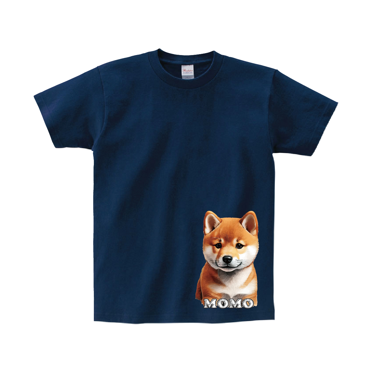 名入れのできるデッサン風の柴犬の子犬Tシャツです。「MOMO」の部分をお好きなアルファベットに変更できます。※画像ははめ込み画像となり、実際とは多少異なりますので予めご了承ください。 ※サイズ表をよくご確認の上ご購入ください。 ※受注生産となるため、返品、交換はご遠慮ください。