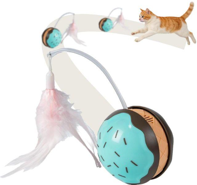スタイル:かわいい◆商品名:PETERIA猫おもちゃ電動自動LEDライト鳥の声付き羽根付き猫用電動おもちゃ薄荷チョコ風デザイン光るボール猫運動不足解消ストレス解消人気ペット玩具一人遊び
