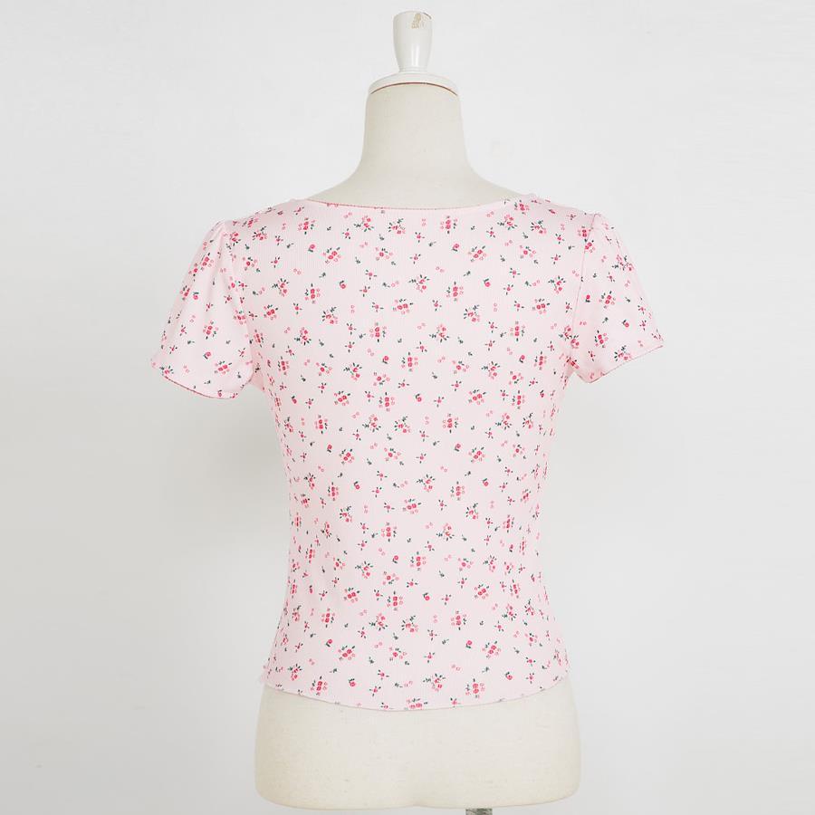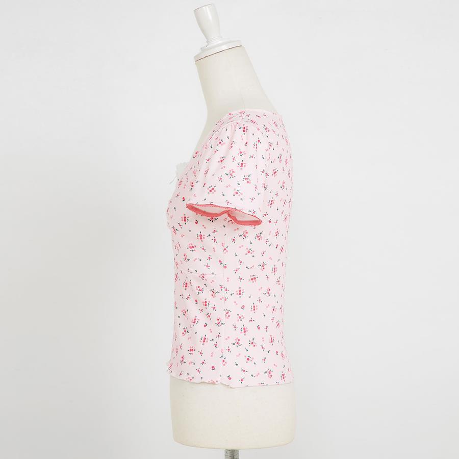 ◆Design小さなRose柄が施された細リブの半袖カットソートップスロマンティックな雰囲気バレエコアコーデにGOOD!細リブの素材感がほどよくボディラインにフィットし、上品で洗練されたシルエットを作り出します。胸元には花がついててチラ見せレースも本体についているので1枚で楽々コーデ。