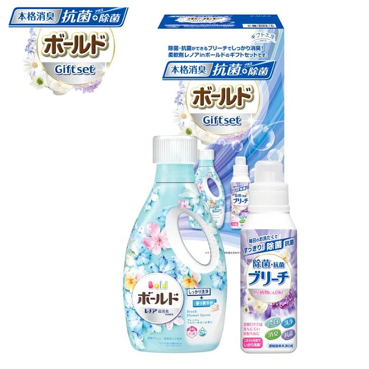 除菌・抗菌ができるブリーチでしっかり消臭!柔軟剤レノアinボールドのギフトセットです。