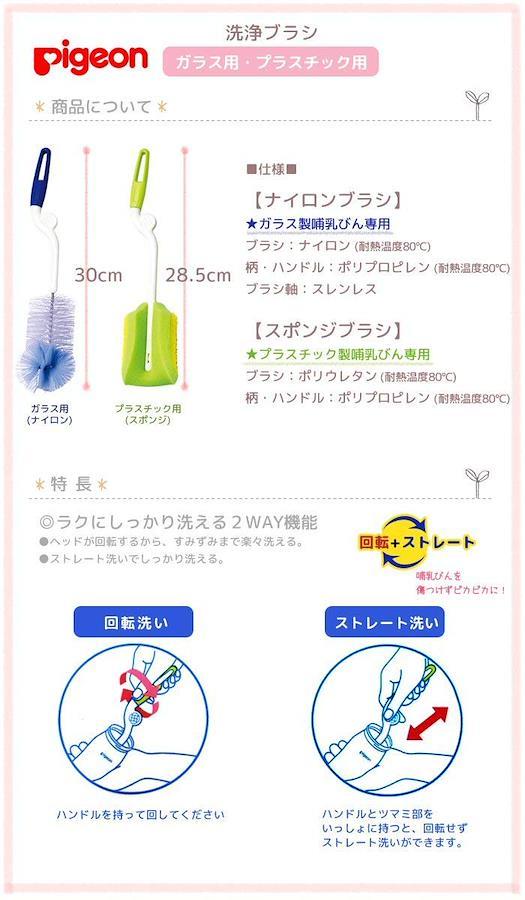 Pigeon (ピジョン) ナイロンブラシ ガラス製哺乳びん専用 2WAY 洗浄ブラシ【04038】