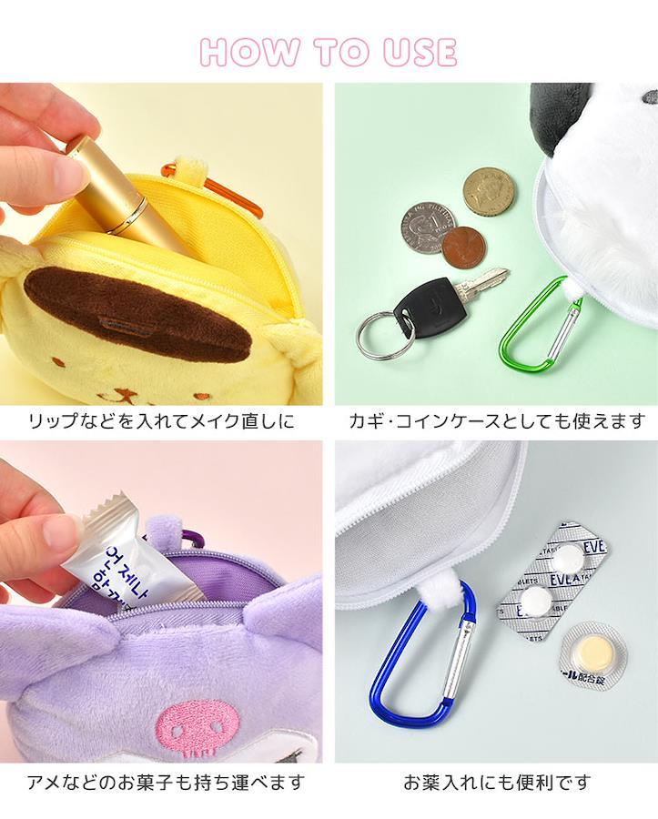 Plush pouch keychain Sanrio character mascot keychain mini pouch accessory case coin purse backpack bag attachment carabiner included storage cute stylish Cinnamon Pompompurin Kuromi Mai [tjs-mascot02]