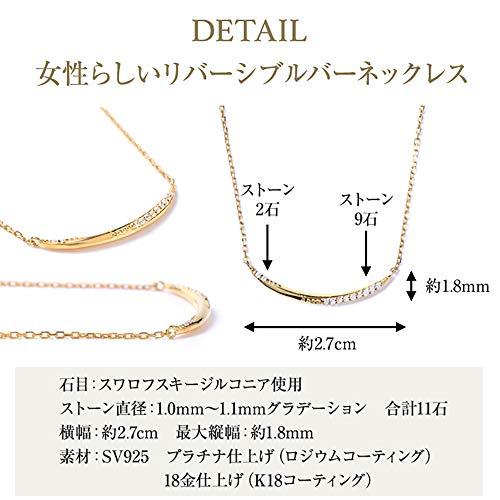 【素材・サイズ】ストーン:スワロフスキージルコニア 1mm~1.1mm×11石 トップサイズ:横幅 約2.7cm 最大縦幅:約1.8mm 金性:SV925 プラチナ仕上げ(ロジウムコーティング) ネックレス全長:最大約45cm 無段階で長さ調整が可能。