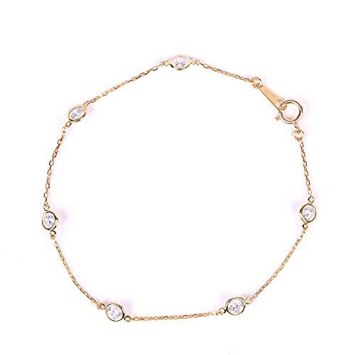【素材・商品サイズ】ストーン:スワロフスキージルコニア直径約3.5mm×6pc 金性:SV925 ゴールド仕上げ(K18コーティング) 全長:約18cm