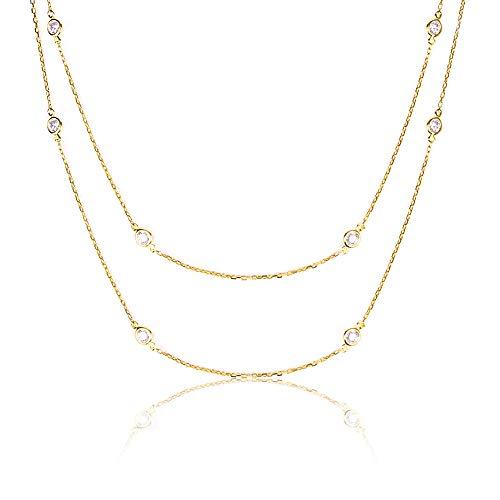 【正規スワロフスキージルコニアの使用を保証】正規ブランドタグ付のswarovski zirconia。ジュエリースタジオ プラスターだけのオリジナルデザインです。ダイヤモンドに匹敵する輝きは、他にはない特別な贈り物にも。【付属品】ギフトケース、ギャランティカード、お礼状、紙袋。そのままプレゼントとしてお渡し出来るので、彼女や妻、お母様など、女性へのギフトとしてもおすすめです。【金属アレルギー対応】金属アレルギーを起こしやすいニッケル・コバルト・スズ等の素材を一切使用しておりません。アレルギーをお持ちの方でも安心してご使用頂けます。※個人差がございますので全ての方に適合する物ではございません。【素材・サイズ】ストーン:スワロフスキージルコニア 直径約3.5mm×23石 金性:SV925 ゴールド仕上げ(K18コーティング) ネックレス全長:約92cmプロポーズ・母の日・誕生日プレゼント・結婚のお祝いや記念日に、また出産後のプレゼント・お嬢様への卒業式や入学式のお祝いなどでも人気の商品です。
