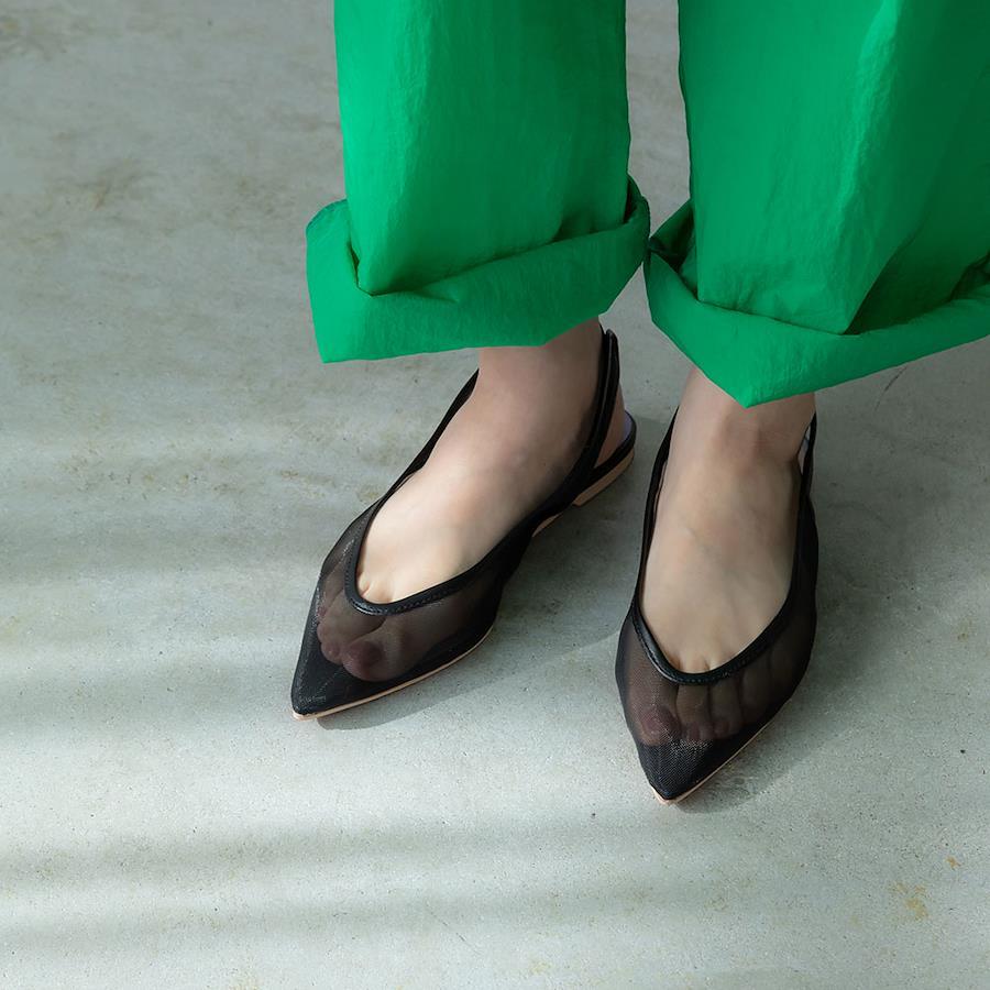 ポインテッドトゥでシャープな印象になり、ボトムも選びません。