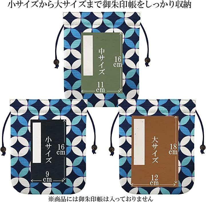 ・「ゆとりのある巾着で御朱印帳を収納」小サイズから大サイズまで、ご朱印帳が入る収容力のある巾着袋です。