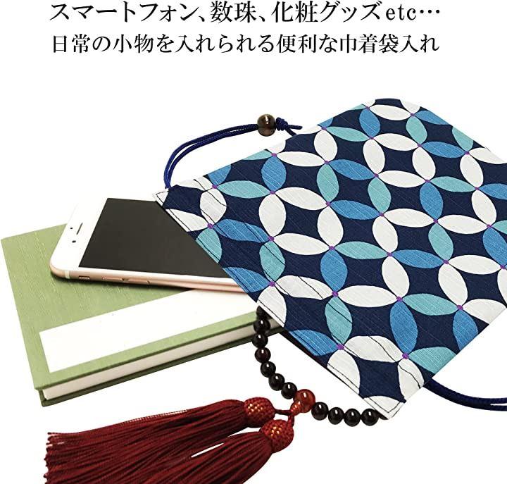 スマートフォン、マスク、化粧グッズ、数珠などアイデア次第でいろいろなものを便利に収納できる、小物用袋入れです。