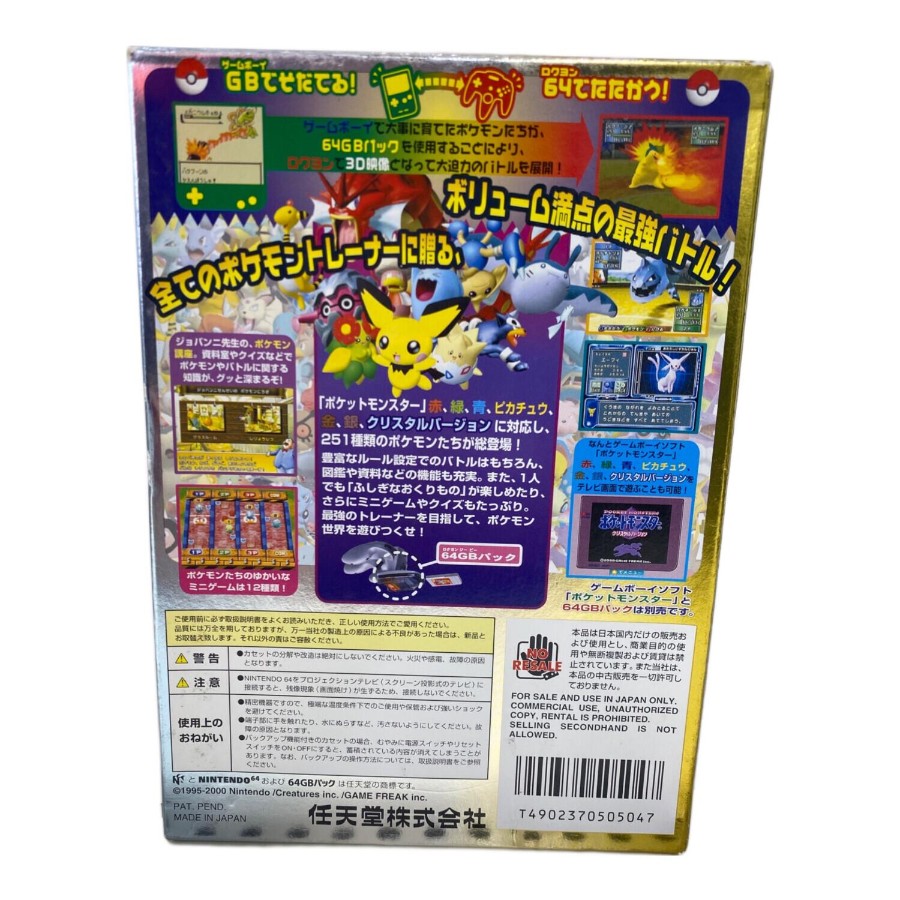 ■商品状態程度B:通常程度の使用感があるお品物こちらの商品は小キズやヨゴレ、若干の使用感などが見受けられます。また店頭にて展示販売を行っている為、記載に無いキズ、ヨゴレなどが見受けられる場合がございます。■商品説明メーカー:Nintendo(任天堂)商品名:ポケモンスタジアム金銀クリスタルバージョン型番 :NUS-NP3J-JPN発売年:2000/12/14JANコード:4902370505047備考:■付属品箱付■その他必ず、商品注文される前に店舗情報に記載している注意事項をご確認ください。