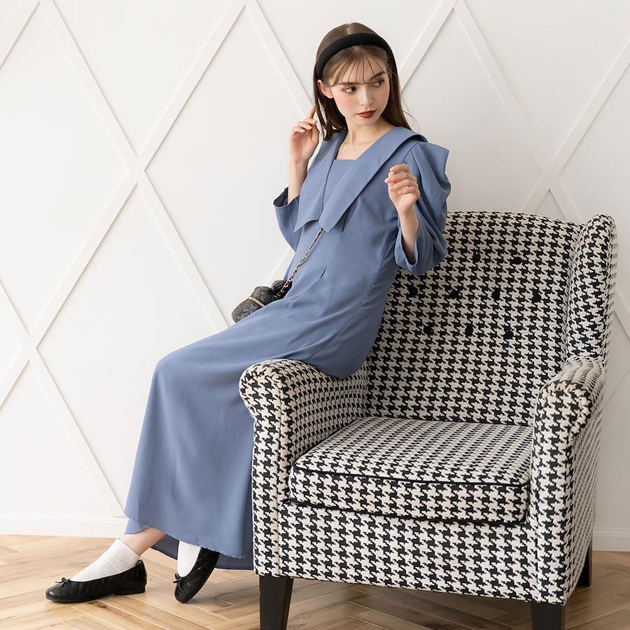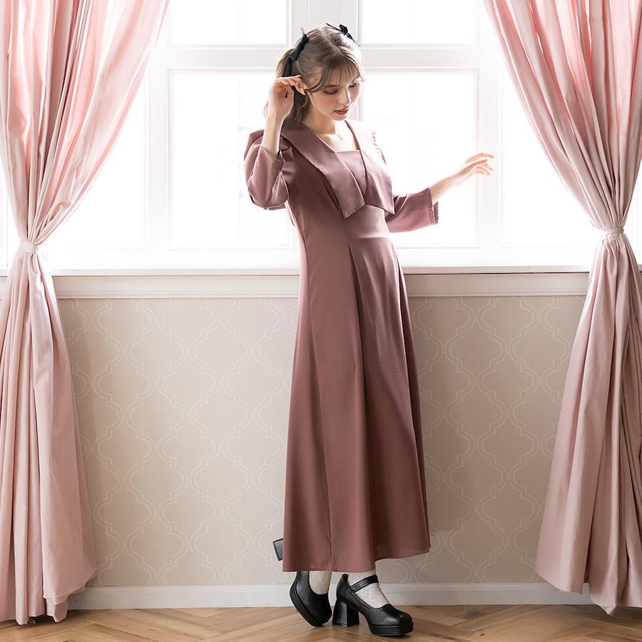上品クラシカルなパワショルセーラーワンピースのご紹介。
