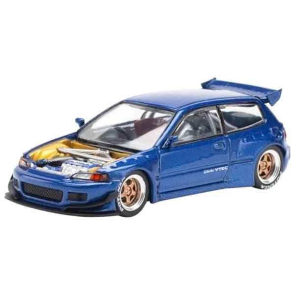 POP RACE 1/64 パンデムシビック EG6 メタリックブルー オープンボンネット 完成品 PR640174