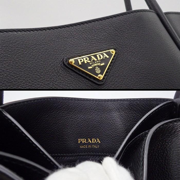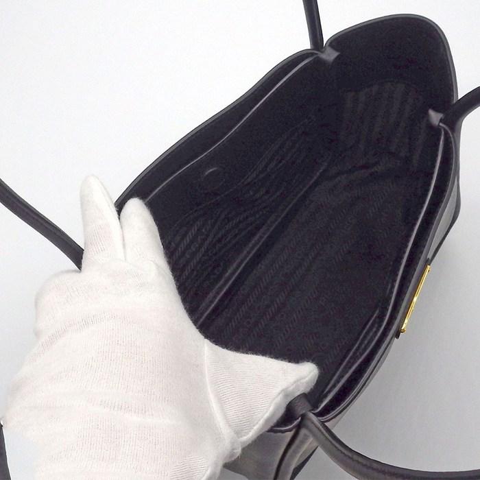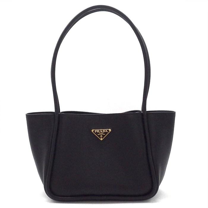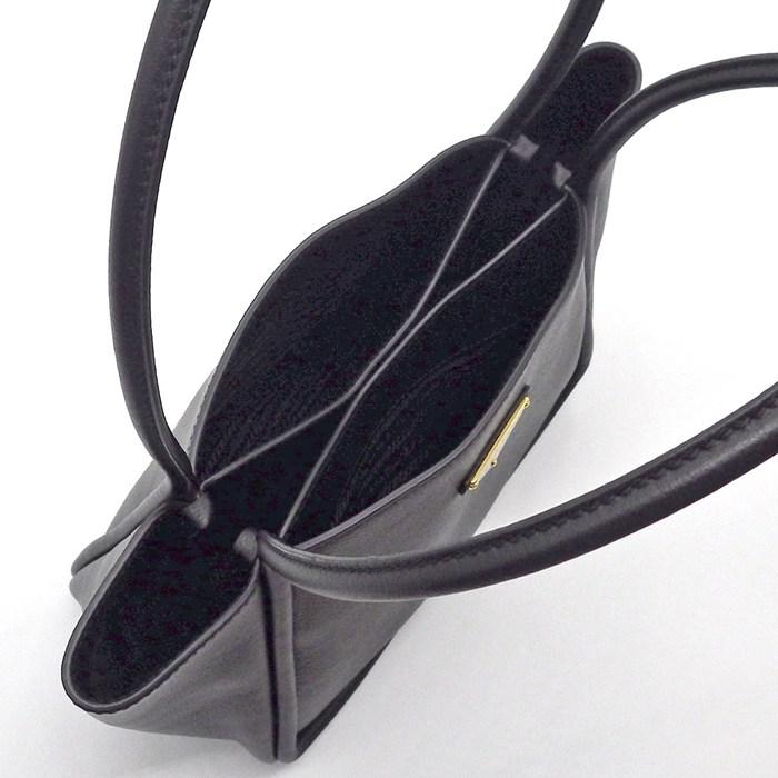 ■商品名ソフトグレイン トライアングルロゴ ミニ トート 1BG539 ブラック レザー ゴールド金具 【中古】