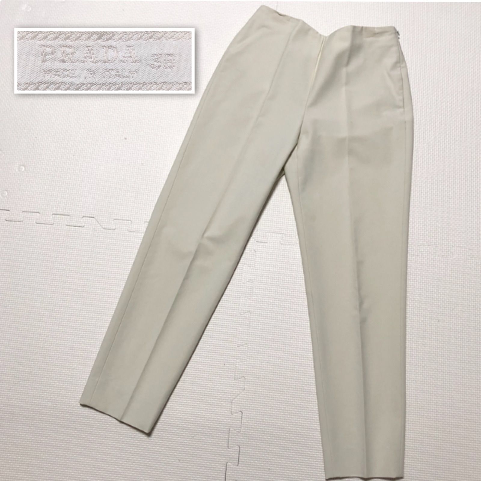 ■商品概要PRADA プラダパンツ スラックスセンタープレスsize38(M) ※詳細は下部寸法値を必ずご確認くださいイタリア製ホワイト系アイボリー裏地無しタグありエラスタン混ポリエステルレディースラグジュアリー 高級 ハイブランドカジュアル ビジネス