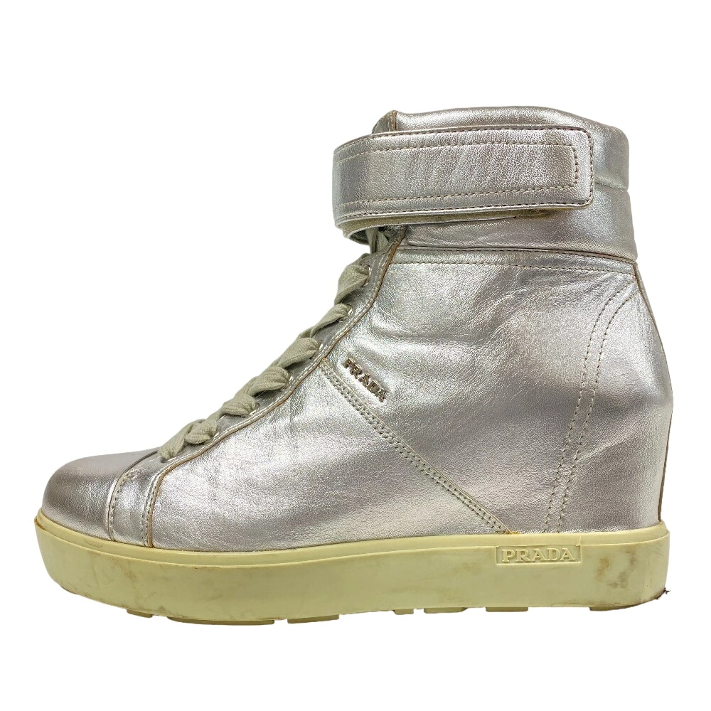 商品名 | PRADA/プラダ 3TZ015 38 ハイカットスニーカー インヒール スニーカー シルバー レディース |