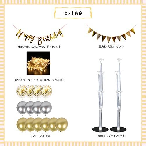 お客様のレビューによると製品を改良いたしました!! 【お得なバースデーパーティーデコレーションセット】 風船ホルダー x2セット? バルーンX14個 三角掛け旗x1セット HappyBirthDayガーランドx1セット USBスターライトx1本(6M、光源40個) 【バルーンスタンド】バルーンスタンドは誕生日・クリスマス・結婚式・二次会・ホームパーティー・ハロウィン・バレンタイン・プロポーズやその他の記念日・イベントの装飾に最適でどんなシーンにもぴったりです! 【リサイクル可能】両面テープで壁に貼り付けるだけで簡単に装飾できます。そして、「ハッピーバースデー」を吊るすことができます。パーティーが終わったら、それを正しく保存し、次のパーティーや部屋の装飾として再利用できます(ストローなどをインレットに挿入して適用することで、空気を取り除くことができます圧力。 【高品質の素材を使用しています】私たちの風船はあなたの肌に安全なプレミアムナチュラルラテックス、ノーオーダー、非毒性で作られています。 【保証について】 風船はすべて目視にて検品しておりますが、小さな破れがある場合がございます。商品がお手元に届きましたら、お客様にて一度、少量の空気を入れてのご確認をお願いいたします。 商品に不良箇所があった場合は、交換手続きを対応いたします。 ご使用日までに余裕を持ったご注文を重ねてお願いいたします。