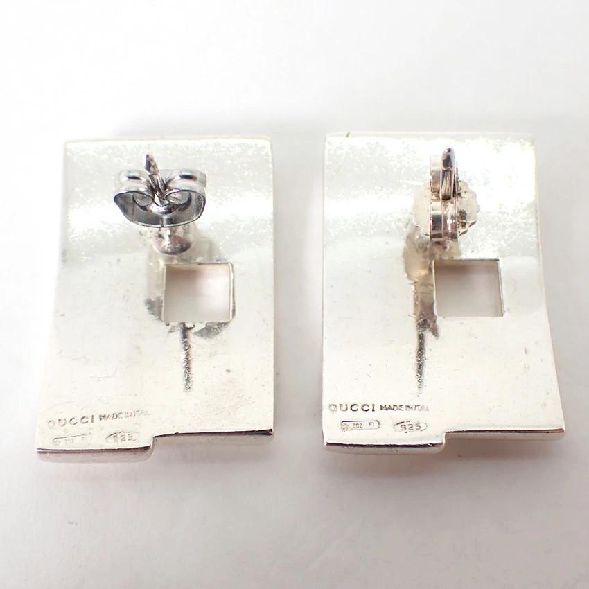 Product DetailsProduct Rank: BMaterial: Sterling Silver 925Weight: Approx. 16.1gModify: Approx. 16.9mm long x 26.4mm wideSpecifications: Stud earrings (backing not included)Product DetailsGucci Earrings: These striking earrings feature the Gucci G logo.Brand new and polished.Product Rank: [N] New or equivalent, in excellent condition with no defects. [S] Almost completely free of defects and in good condition. [A] Light signs of use. [B] Signs of use. [C] Very heavy signs of use, obvious damage or stains, in need of repair. ____________________________Condition: Used