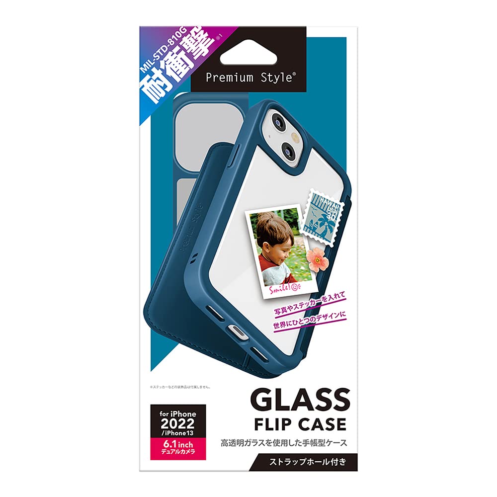 Premium Style Glass Flip Case for iPhone14 [Navy] PG-22KGF03NV