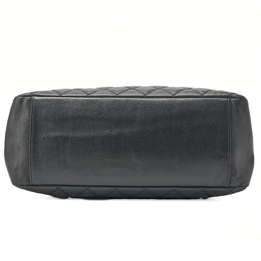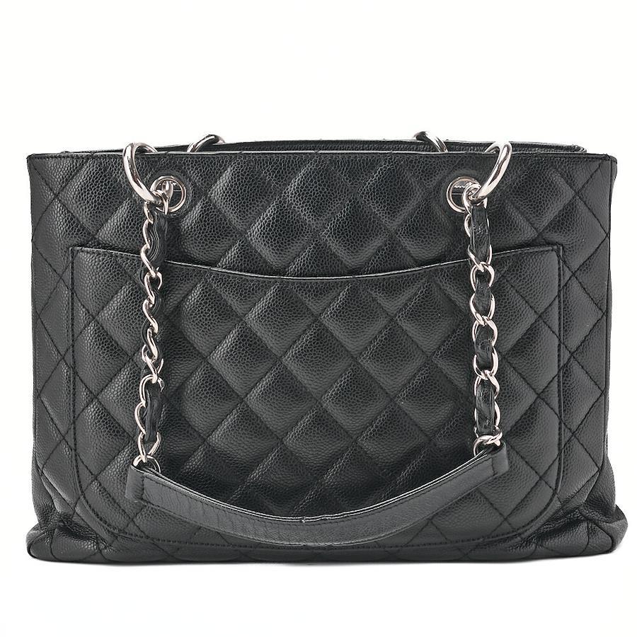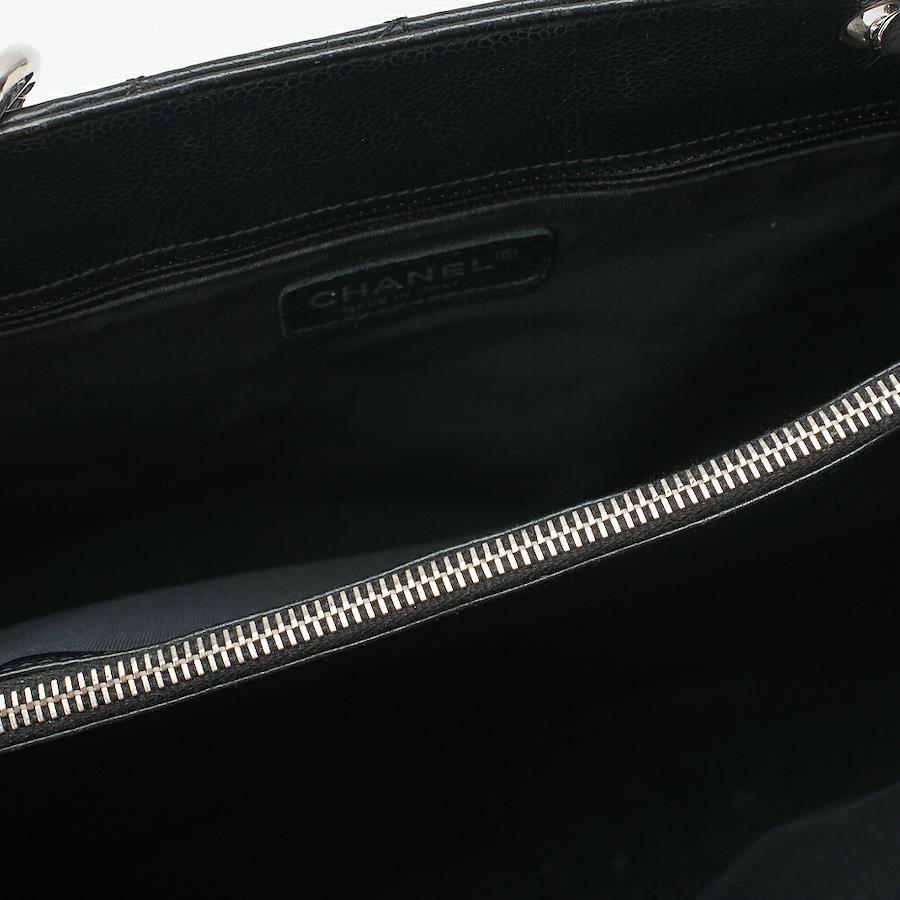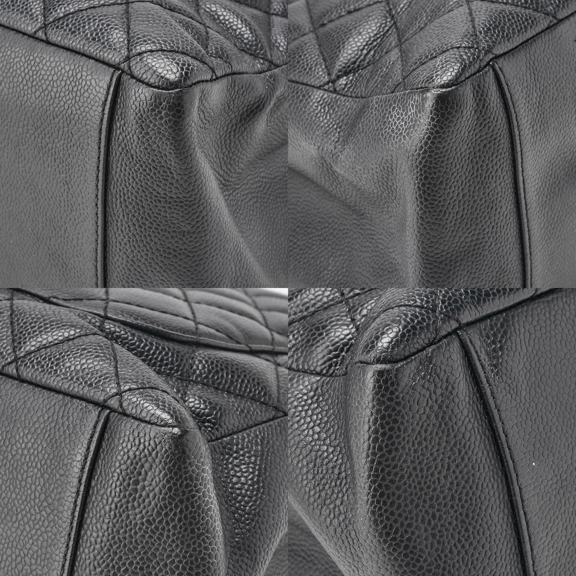 Pre-owned CHANEL Matelasse GST Chain Tote Shoulder Bag in Black Caviskin with Silver Hardware.