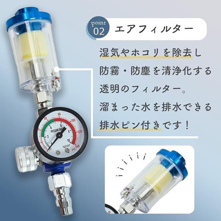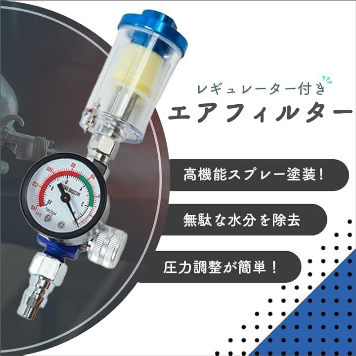 高性能スプレー塗装の必需品として、自動車の補修・船舶・建設・木工・家具製造などの作業に必要不可欠なレギュレーター付きエアーフィルターです。