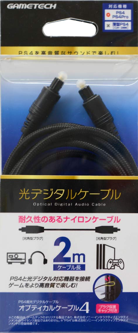 特徴1:PS4と光デジタル対応機器を接続。ゲームをより高音質で楽しめます。特徴2:編込みナイロンケーブルで耐久性をアップ。特徴3:端子部分には金メッキ処理。さらに非使用時のための保護キャップ付き。特徴4:ケーブル長は使いやすい2mです。