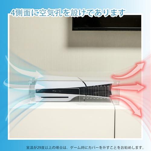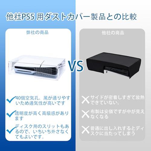 (Protects the main unit from dust) Simply put it on to prevent dust, making it convenient. Although we have a cat, it can protect against hair loss and shock. If you are concerned about the accumulation of dust Transparency: High transparency and luxury. 3 mil acrylic board with high transparency allows you to cover your PS5 perfectly. When you look at the PS5 on this cover, it may look like a mass-shop display (Suction and Exhaust) Unlike fabric items, there is a slight air flow passage, so heat doesn't overnight in rest mode. Fully dust-free play with the exception of air holes and necessary plugs. Compatible with peripheral devices (stands, etc.) without interfering with Perfect Size: The acrylic cover itself has a large amount of room for ease of use. There is also a slit for the disk and a hole for the USB terminal, so you don't have to remove it every time. Even if you use the PS5 stand, you can use it without any problem! Product Packaging: The product packaging is also solid, with a thin protective sheet to prevent the acrylic from being scratched, and the inside of the case is made of styrofoam to prevent excessive force during transportation