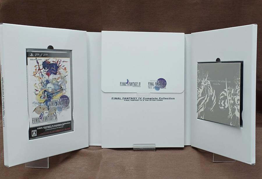 ファイナルファンタジーIV』と、そのアフターストーリー『ジ・アフター』、ふたつの時代を同時収録したコンプリートコレクションがPSPに 登場。高画質に生まれ変わったグラフィック、ふたつの時代をぐ新たなシナリオを追加、さらにギャラリーモードも搭載した様のコレクター ズパック!公式ガイドブックが付属します。