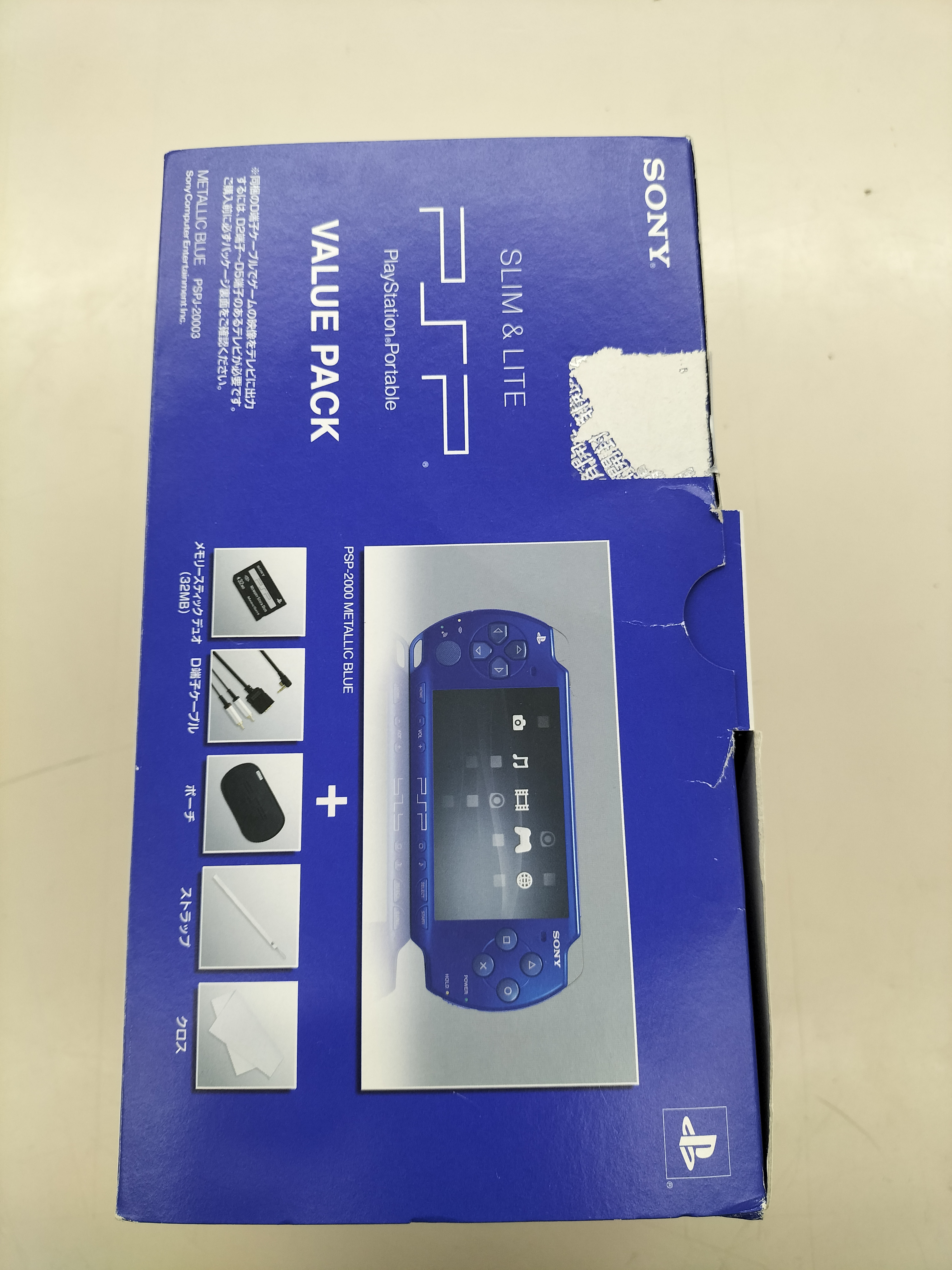 ■詳細PSP中期型2000バリューパック カラー:メタリックブルー※ストラップ欠品。社外製バッテリー付属。その他付属あります。液晶にヨゴレあります。