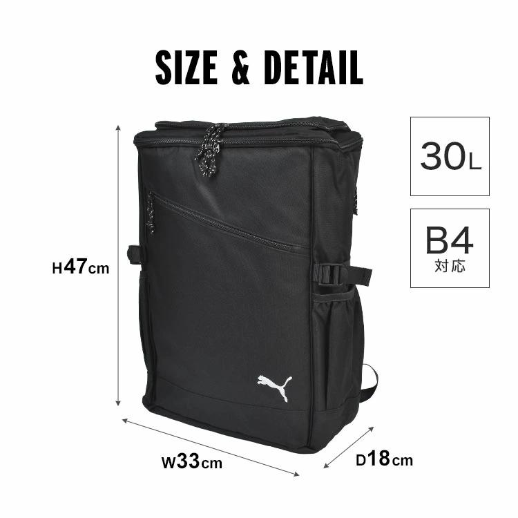 PUMA Backpack, 30L, Large Capacity, Sports Brand, Square Design, School Backpack for Boys, Junior High School Students, Elementary School Students, Upper Grades, Black, Simple Design, One-Point Design, Large, Travel Backpack, A4/B4 Size, Lightweight [mori-ruck04]