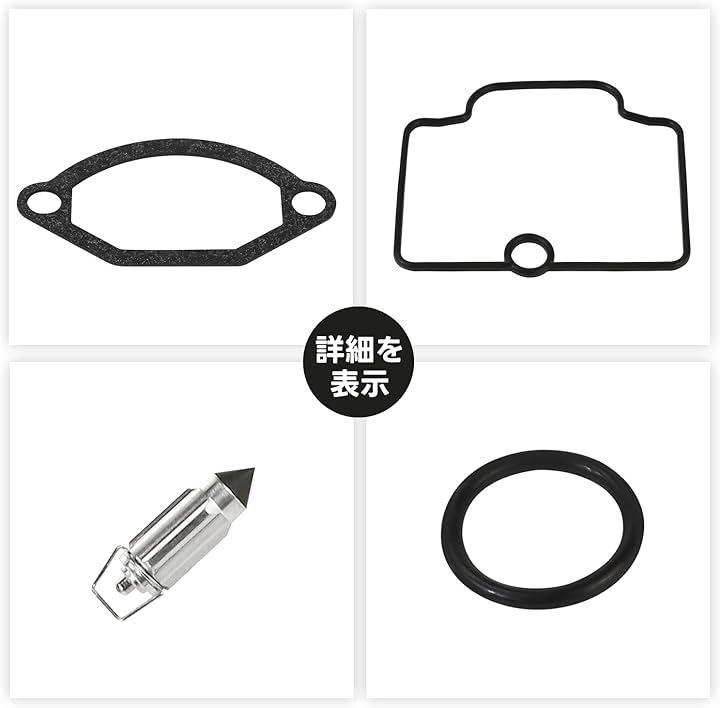 「SET内容」:トップガスケット、O リング、フロートチャンバーガスケット、フロートバルブ。
