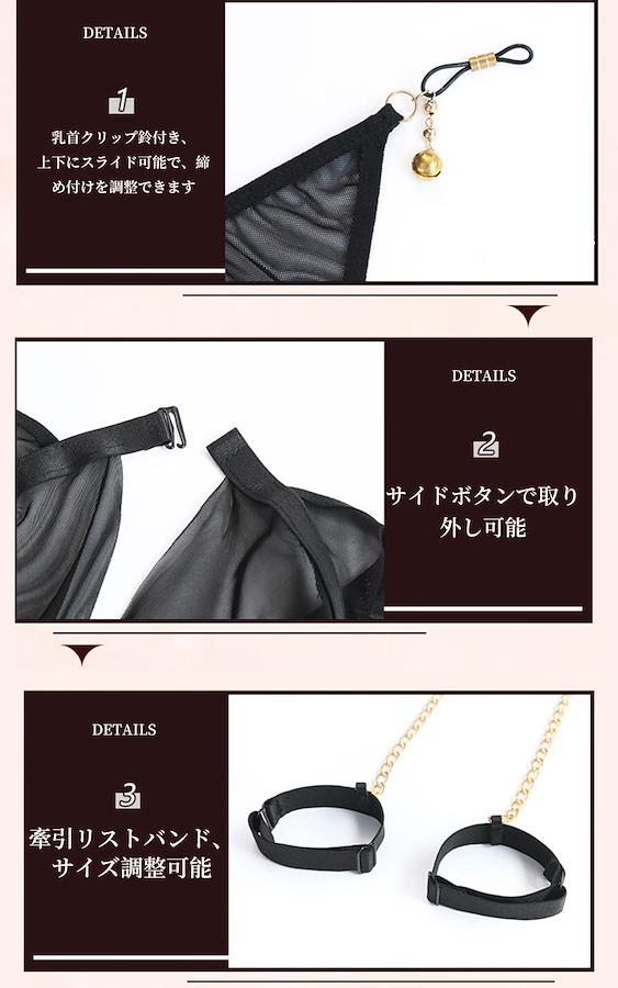 梱包サイズ?:?29.9x24.9x2.6cm;120gでの取り扱い開始日?:?2024/10/16ASIN?:?B0DK578CWZ商品モデル番号?:?QCN-7411-01部門?:?ユニセックス大人売れ筋ランキング:ドラッグストア-38,782位(ドラッグストアの売れ筋ランキングを見る)アダルト用コスチューム-203位カスタマーレビュー:4.15つ星のうち4.113個の評価vardpAcrHasRegisteredArcLinkClickAction;P.when('A','ready').execute(function(A){if(dpAcrHasRegisteredArcLinkClickAction!==true){dpAcrHasRegisteredArcLinkClickAction=true;A.declarative('acrLink-click-metrics','click',{"allowLinkDefault":true},function(event){if(window.ue){ue.count("acrLinkClickCount",(ue.count("acrLinkClickCount")||0)+1);}});}});P.when('A','cf').execute(function(A){A.declarative('acrStarsLink-click-metrics','click',{"allowLinkDefault":true},function(event){if(window.ue){ue.count("acrStarsLinkWithPopoverClickCount",(ue.count("acrStarsLinkWithPopoverClickCount")||0)+1);}});});登録情報取り扱い案内 手洗いのみ。セット内容:ナイトドレス + Tバックサイズ:フリーサイズ、着丈76cm、ウエスト60-90cm、推奨体重40-70kg;セクシーな黒色で、神秘的かつ魅惑的に見えます。素材とスタイル:ポリエステル。洗濯時はなるべく冷水で手洗いし、自然乾燥をおすすめします。胸部が完全に露出し、彼の視線を釘付けにします。乳首クリップ、鈴、手首リングが楽しいひとときを演出し、あなたとパートナーの興奮度を高めます。シースルー素材で、背中やヒップの肌が透けて見えます。推奨対象:彼氏や夫と夜を存分に楽しみたい女性には、このナイトドレスセットがおすすめです。愛の調教を楽しみましょう。特別な衣装として着用して写真を撮るのも良い選択です。男性が彼女や妻へのプレゼントとして選ぶこともでき、ひそかにサプライズを演出できます。適用シーン:キャラクターになりきって体験したい方や、バレンタインデー、新年、誕生日、結婚記念日、クリスマス、ハロウィンなどの特別な日に思い出を作りたい方には、素晴らしい選択です。(#lf)(#lf)(#lf)商品購入前に、ストア紹介ページをご確認ください。