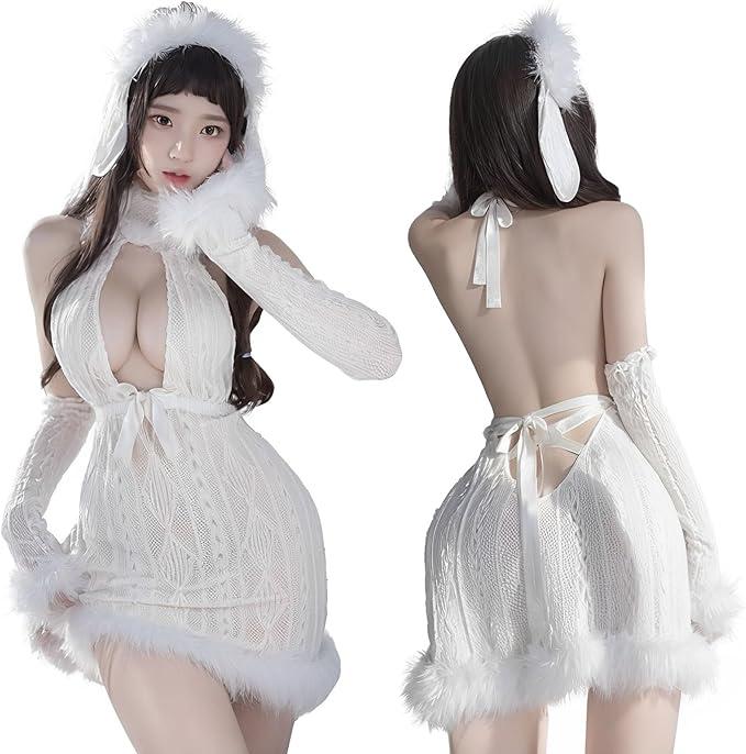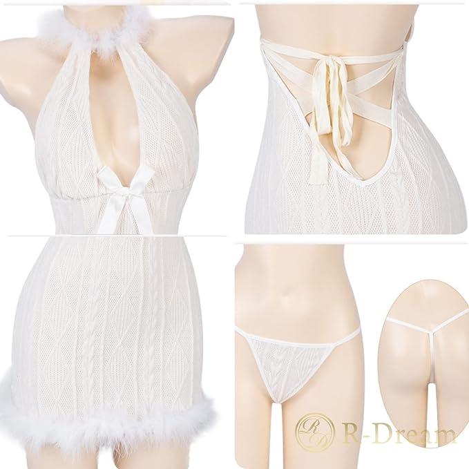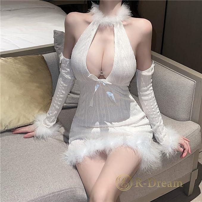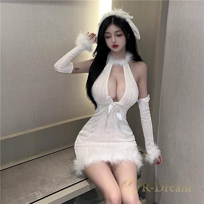 ■商品名[R-Dream] 童貞を殺すセーター ニット ミニ ワンピース タイト レディース もこもこ 暖かい 秋冬 バニーガール コスプレ 羊耳 胸あき ベビードール クリスマス XJ