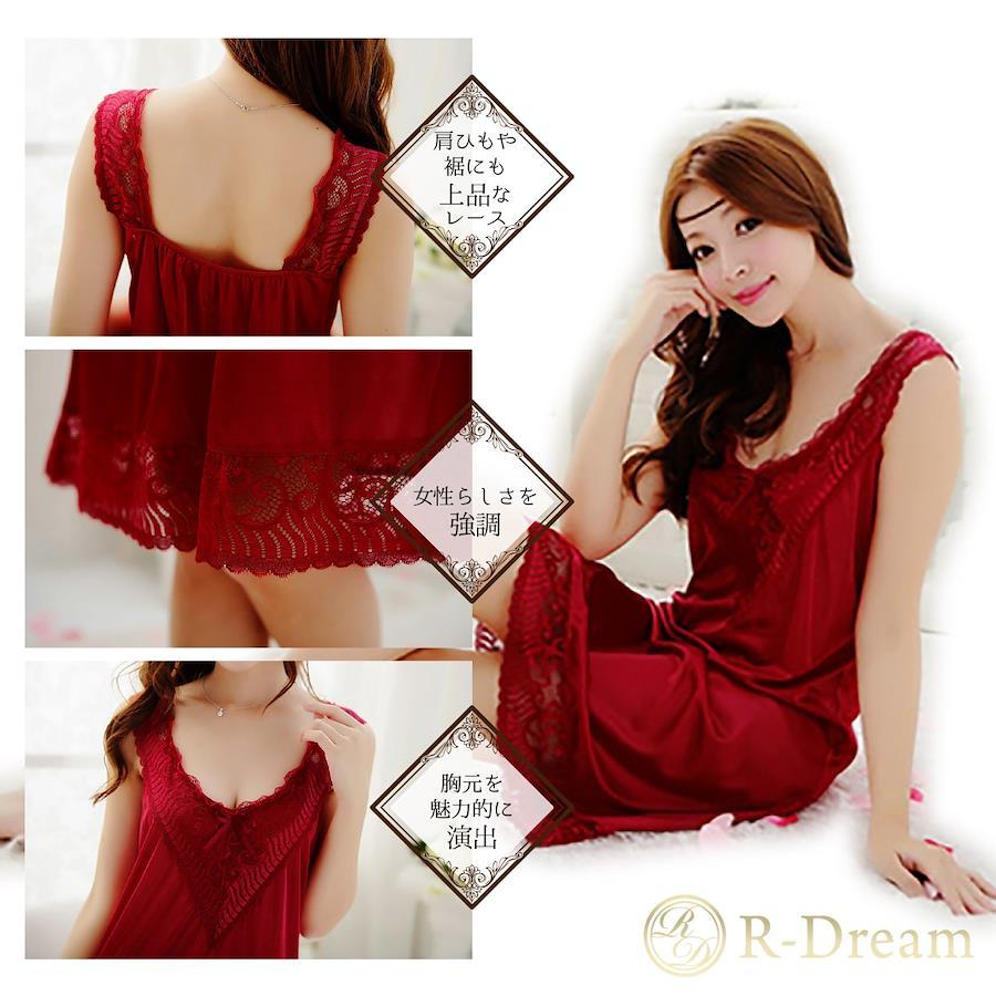 取り扱い案内 洗濯機清楚さの中にもそっとセクシーさをしのばせた、着心地のいい美しいネグリジェです。サイズはフリーサイズで、ゆったりとしながらもきれいなシルエットを保っています。生地はやわからなサテン系で、優しく、しなやかにあなたを包み込みます。そのさらりとした上質な生地に触れているだけで心がほぐれていくことを感じることができることでしょう。薄いですが、とても丈夫で軽いので、睡眠を妨げることがありません。自宅で洗濯もできますので、普段使いの一着としても最適です。そのため、お休みの時のパジャマとしてだけでなく、ルームウェアとしてくつろぎのひとときにもご利用いただけます。また、大きめのVネックとその周りにあしらわれたレースデザインがあなたの首もとや鎖骨周り、胸元などのデコルテラインを大人っぽく、魅力的に演出してくれます。胸元だけでなく肩ひもや裾にも上品なレースがたっぷりとあしらわれており、女性らしさを強調してくれます。カラーも、かわいらしいピンク、シンプルな白、妖艶なブラック、情熱的な赤の4種類を展開しているので、あなたの気分に合わせてお好きなものを身につけてください。ネグリジェ初体験の方も、いつも使っている方にもお勧めの商品で、まさにあなたの期待にこたえるネグリジェと言えるでしょう。【カラー】ブラック、ホワイト、ワインレッド、ピンク 【サイズ】フリーサイズ ※着丈90cm, バスト80-100cm ※サイズは平置き採寸。多少の誤差がある場合もございます。【メイン素材】ポリエステル(#lf)(#lf)(#lf)商品購入前に、ストア紹介ページをご確認ください。