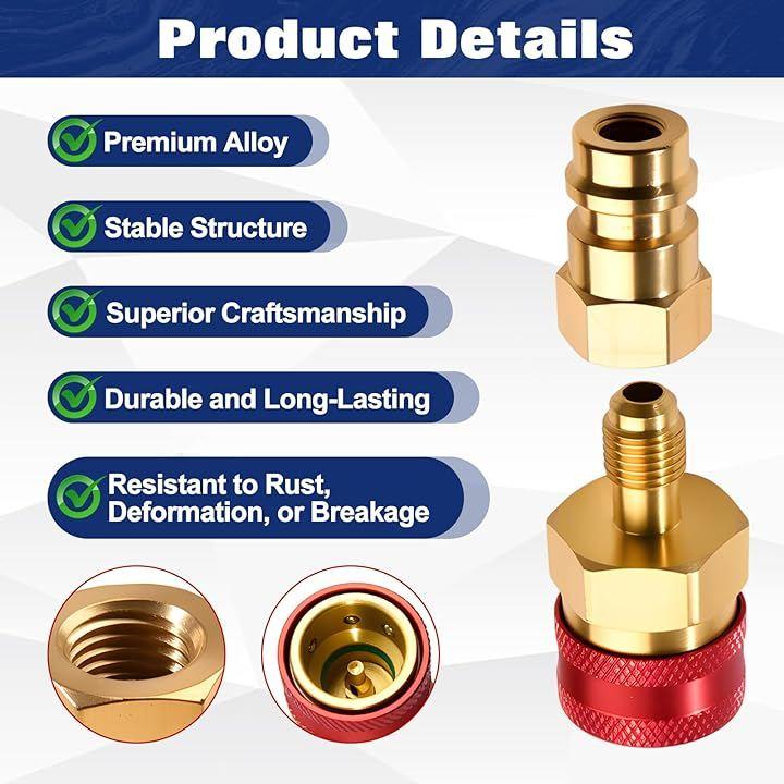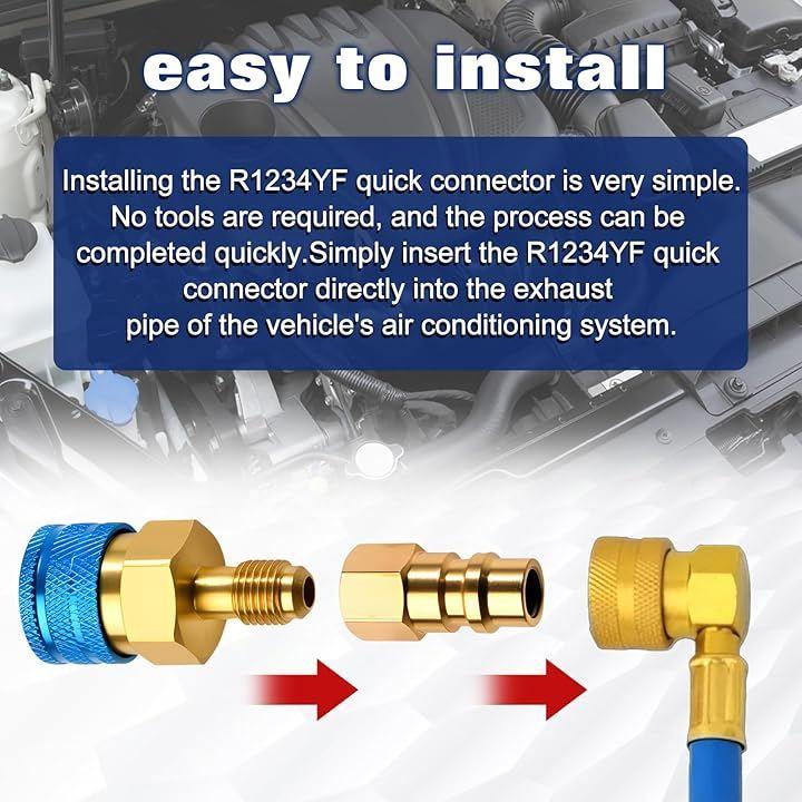 「幅広い用途」本クイックコネクターキットはR134AからR1234YFへの変換が可能で、3ウェイR1234YF/R134Aエアコンマニホールドゲージキットとの併用にも対応。